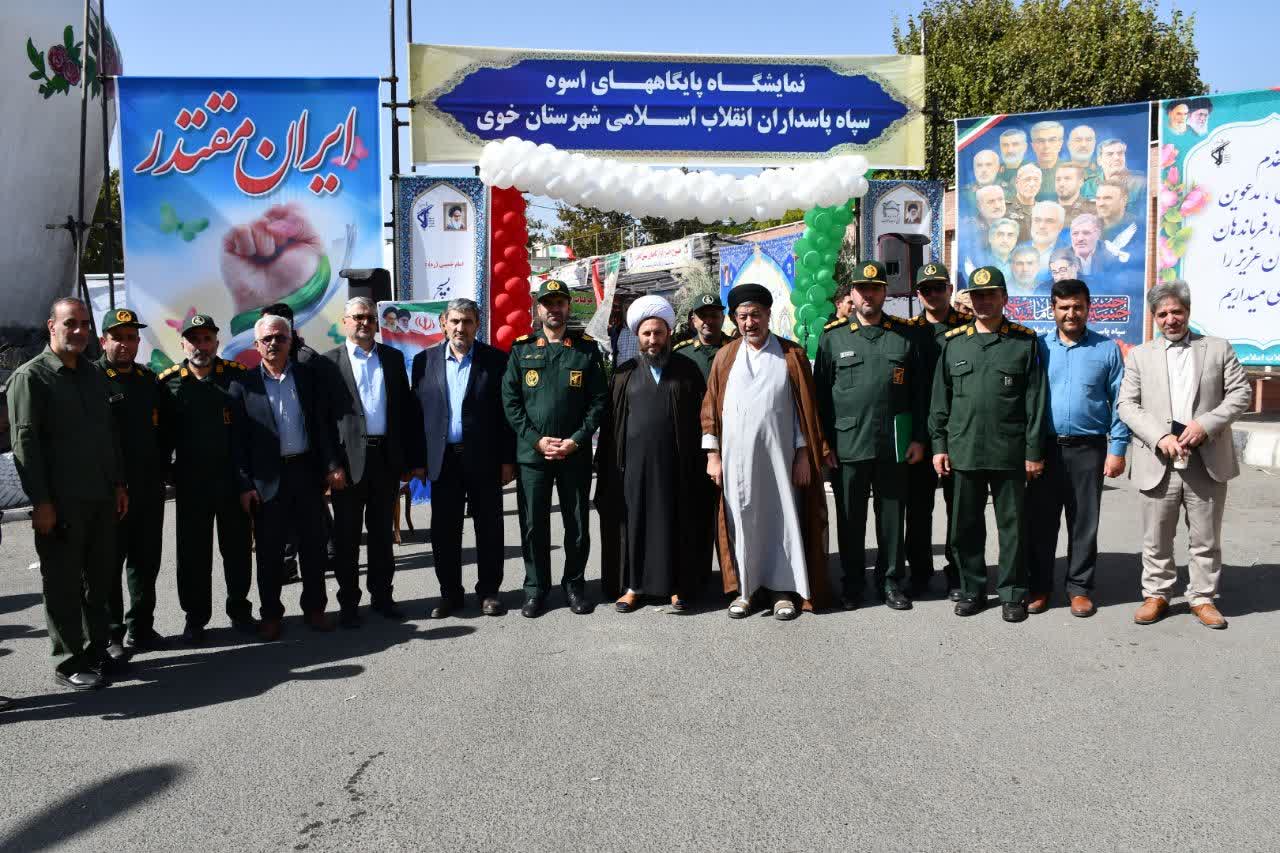 مراسم افتتاحیه نمایشگاه‌ پایگاه های اسوه سپاه شهرستان خوی با حضور حجت الاسلام والمسلمین قاسم‌خانی امام جمعه شهرستان خوی، سردار آقائی فرمانده سپاه پاسداران انقلاب اسلامی خوی ،مهندس نصرالله پور شهردار خوی و جمعی از مسئولین شهرستانی در محوطه روبروی پارک بانوان افتتاح شد.