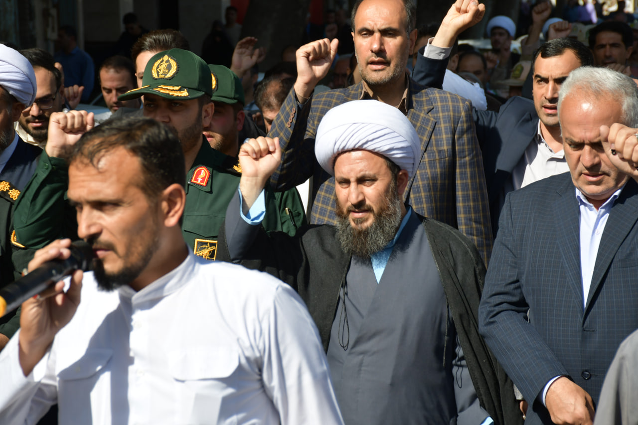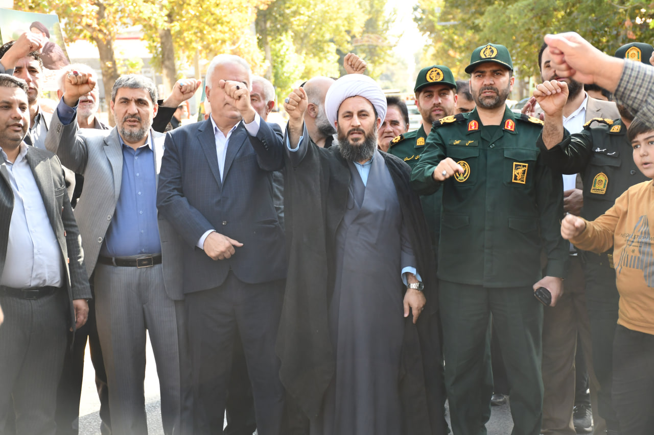 حضور امام جمعه شهرستان خوی در راهپیمایی سراسری بشارت نصر در حمایت از مردم مقاوم و قهرمان فلسطین