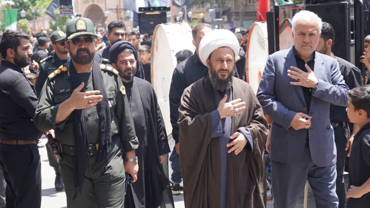 حضور امام جمعه شهرستان خوی در روز تاسوعای حسینی محرم الحرام ۱۴۴۷ در دسته های عزاداری خیابانی