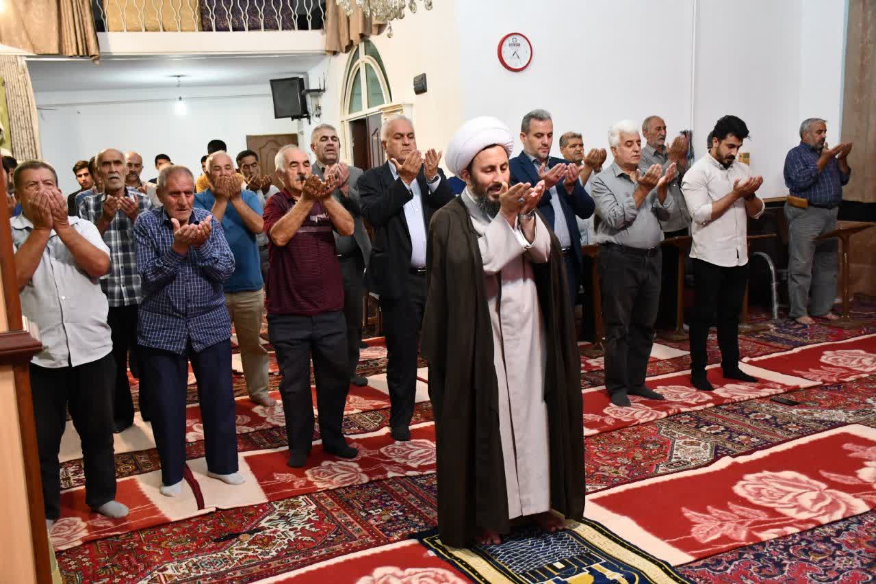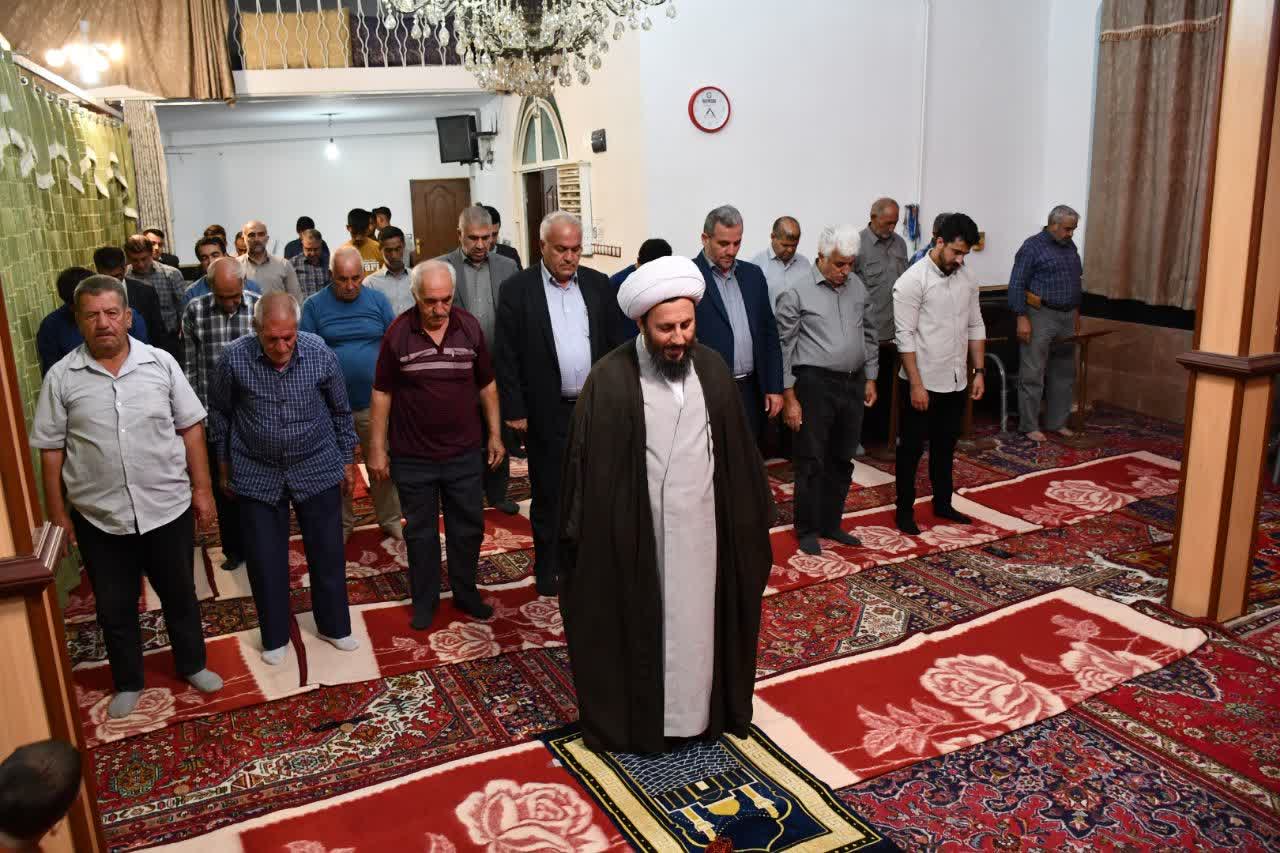 حضور و اقامه نماز جماعت مغرب وعشاء به امامت امام جمعه شهرستان خوی در مسجد امام حسین (ع)